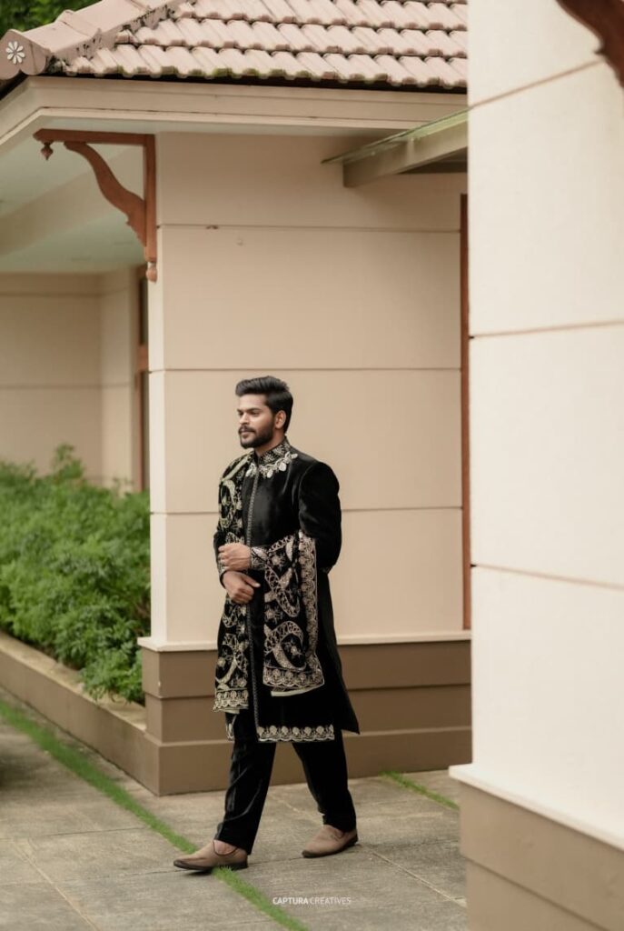 Absolutely! We offer a wide selection of matching accessories, including turbans, stoles, cufflinks, pocket squares, and footwear. Our team can help you coordinate everything for a complete wedding day look.